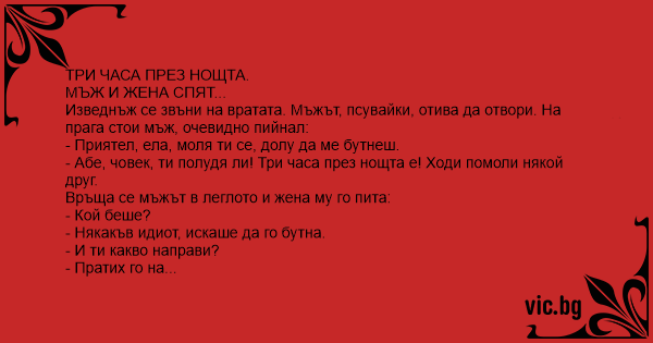 - Абе, човек, ти полудя ли! Три часа през нощта е! Ходи помоли някой друг.