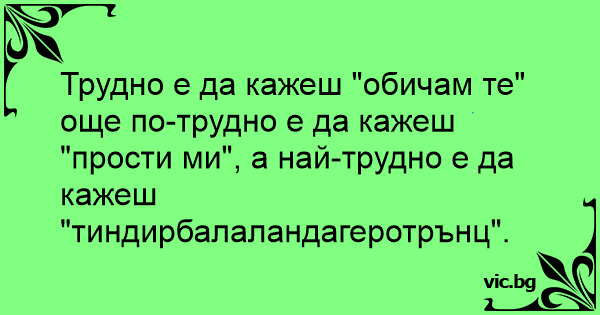 още по-трудно е да кажеш "прости ми", а най-трудно е да кажеш "тиндирбалаландагеротрънц".
