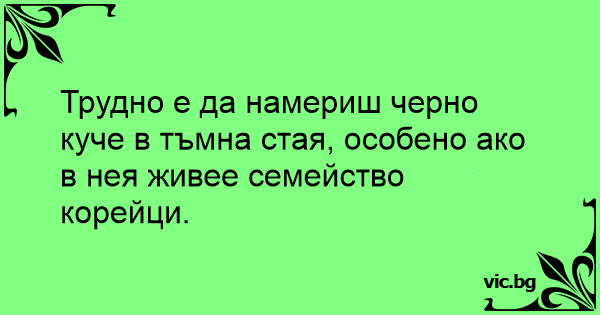 Трудно е да намериш черно куче в тъмна стая, особено ако в нея живее семейство корейци.