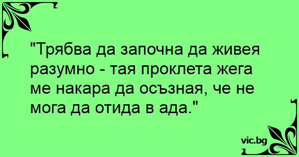 "Трябва да започна да живея разумно - тая проклета жега ме накара да осъзная, че не мога да отида в ада."