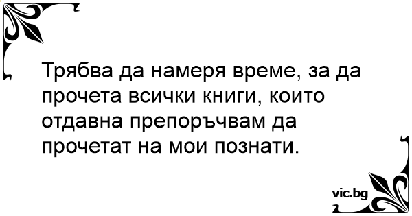 Трябва да намеря време, за да прочета всички книги, които отдавна препоръчвам да прочетат на мои познати.