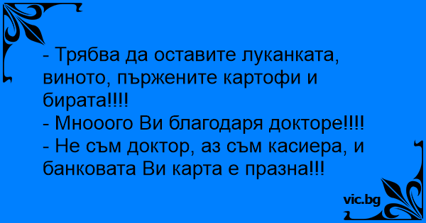 - Не съм доктор, аз съм касиера, и банковата Ви карта е празна!!!
