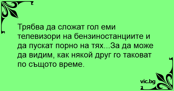 Трябва да сложат гол еми телевизори на бензиностанциите и да пускат пopнo на тях...За да може да видим, как някой друг го таковат по същото време.