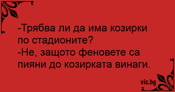 -Не, защото феновете са пияни до козирката винаги.