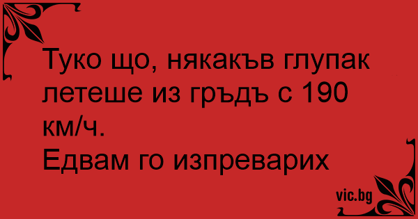 Туко що, някакъв глупак летеше из гръдъ с 190 км/ч.
