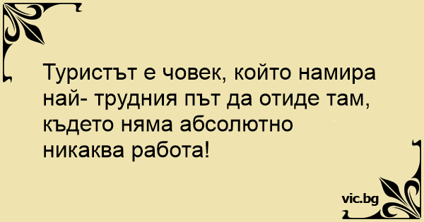 Туристът е човек, който намира най- трудния път да отиде там, където няма абсолютно никаква работа!