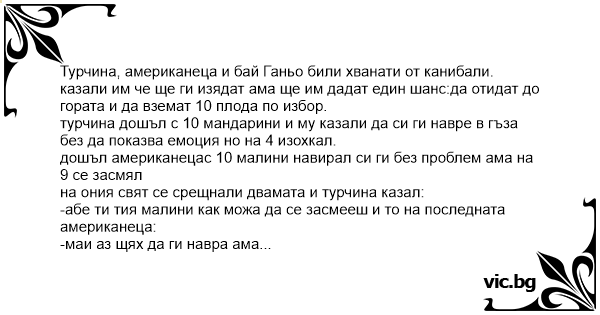турчина дошъл с 10 мандарини и му казали да си ги навре в гъзa без да показва емоция но на 4 изохкал.