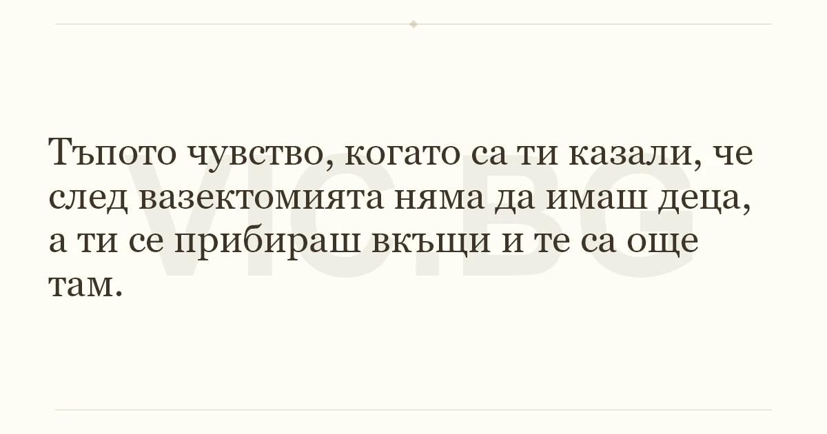 Тъпото чувство, когато са ти казали, че след вазектомията няма да имаш деца, а ти се прибираш вкъщи и те са още там.