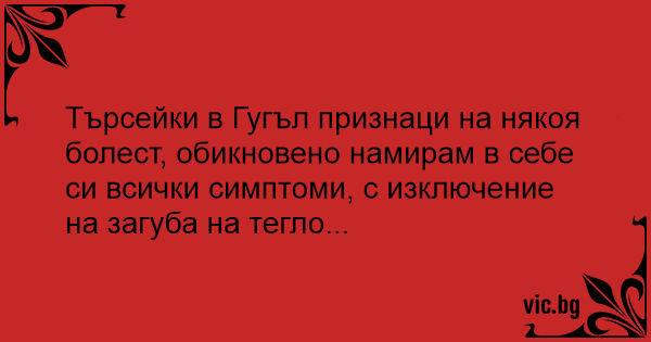 Търсейки в Гугъл признаци на някоя болест, обикновено намирам в себе си всички симптоми, с изключение на загуба на тегло...