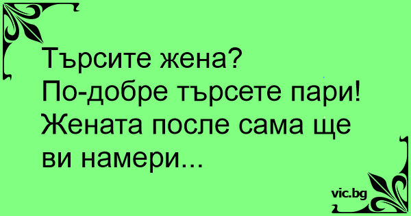 По-добре търсете пари! Жената после сама ще ви намери...