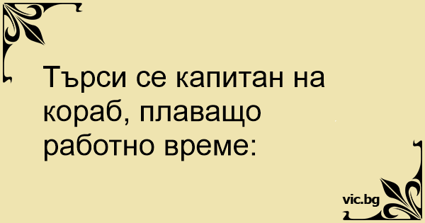 Търси се капитан на кораб, плаващо работно време: