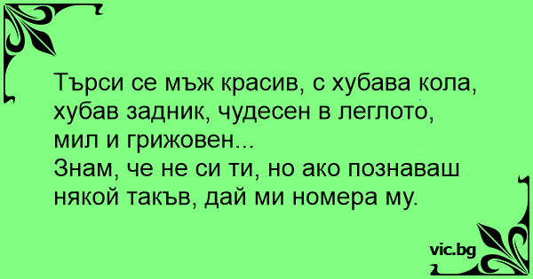 Търси се мъж красив, с...