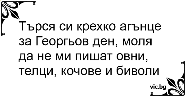 Търся си крехко агънце за Георгьов ден, моля да не ми пишат овни, телци, кочове и биволи