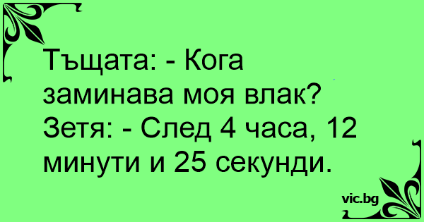 Тъщата: - Кога заминава моя влак?
