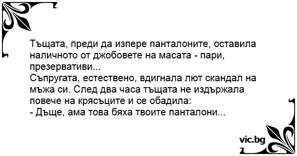 • Вицове от Facebook от нашата страница https://www.facebook.com/www.vic.bg