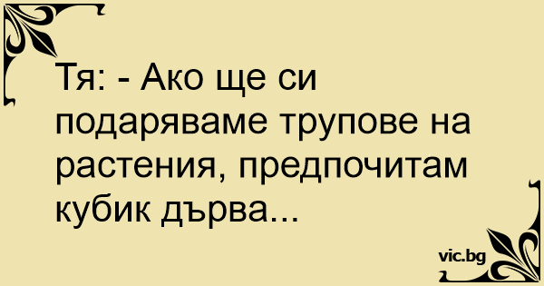 Тя: - Ако ще си подаряваме трупове на растения, предпочитам кубик дърва...