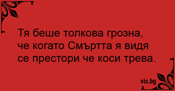 Тя беше толкова грозна, че когато Смъртта я видя се престори че коси трева.