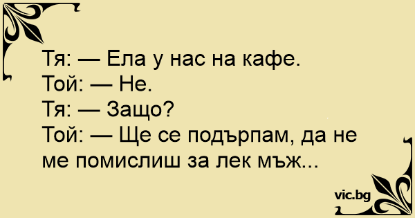 Тя: — Ела у нас на кафе....