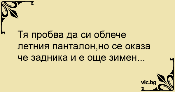 Тя пробва да си облече летния панталон,но се оказа че задника и е още зимен...