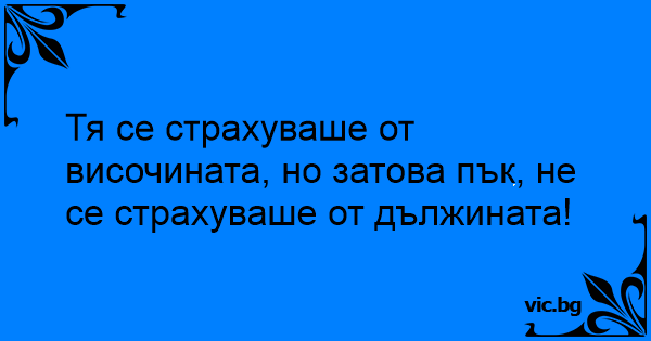 Тя се страхуваше от височината, но затова пък, не се страхуваше от дължината!