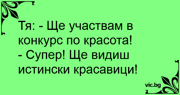 Тя: - Ще участвам в конкурс по красота!