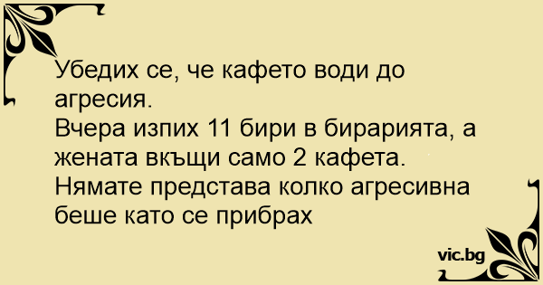 Вчера изпих 11 бири в бирарията, а жената вкъщи само 2 кафета.