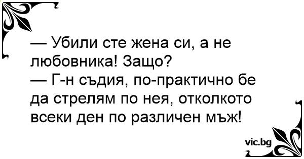 — Г-н съдия, по-практично бе да стрелям по нея, отколкото всеки ден по различен мъж!