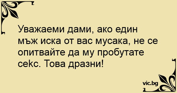 Уважаеми дами, ако един мъж иска от вас мусака, не се опитвайте да му пробутате cekc. Това дразни!