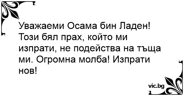 Уважаеми Осама бин Ладен!