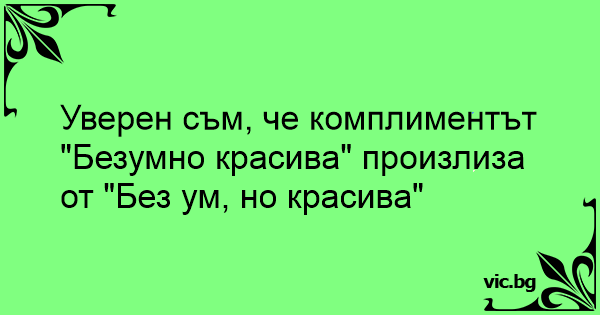 Уверен съм, че комплиментът "Безумно красива" произлиза от "Без ум, но красива"