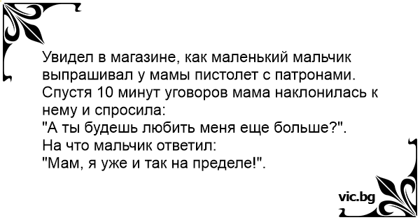 Спустя 10 минут уговоров мама наклонилась к нему и спросила: