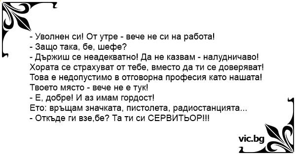 - Откъде ги взе,бе? Та ти си СЕРВИТЬОР!!!