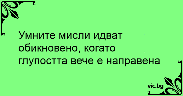 Умните мисли идват обикновено, когато глупостта вече е направена