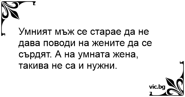 Умният мъж се старае да не дава поводи на жените да се сърдят. А на умната жена, такива не са и нужни.