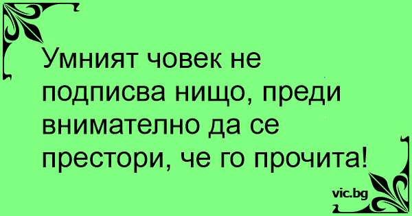 Умният човек не подписва нищо, преди внимателно да се престори, че го прочита!