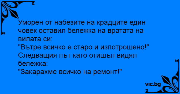 • Вицове от Facebook от нашата страница https://www.facebook.com/www.vic.bg