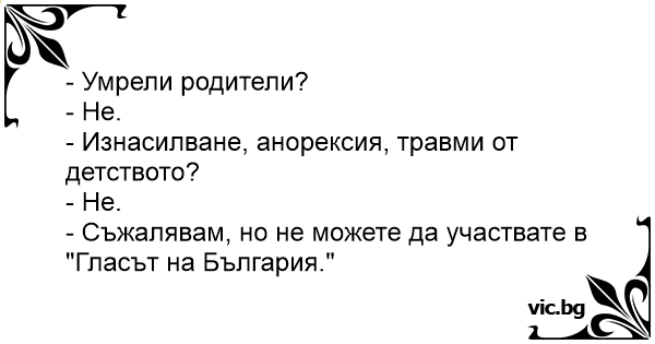- Съжалявам, но не можете да участвате в "Гласът на България."