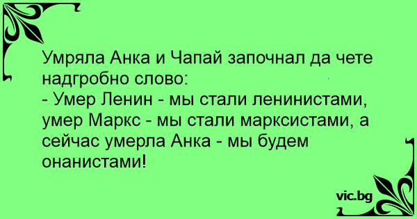 - Умер Ленин - мы стали ленинистами, умер Маркс - мы стали марксистами, а сейчас умерла Анка - мы будем онанистами!