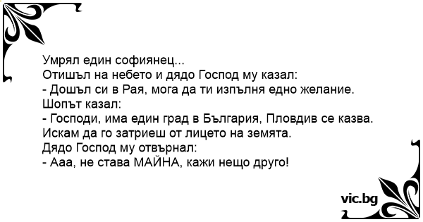 Вицове от Facebook от нашата страница https://www.facebook.com/www.vic.bg