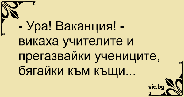 - Ура! Ваканция! - викаха учителите и прегазвайки учениците, бягайки към къщи...