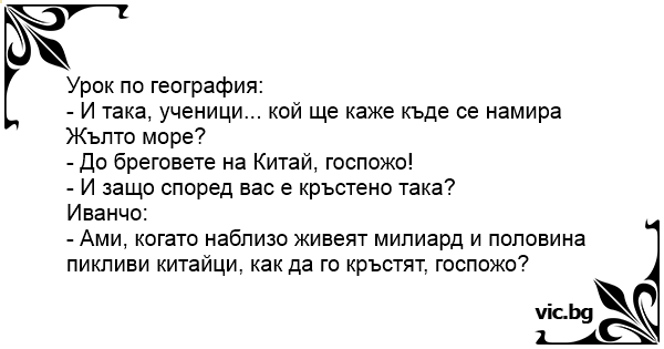 - И така, ученици... кой ще каже къде се намира Жълто море?