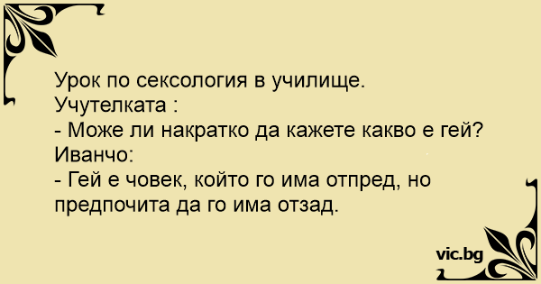 • Вицове от Facebook от нашата страница https://www.facebook.com/www.vic.bg