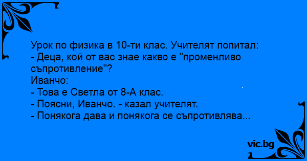 Урок по физика в 10-ти клас. Учителят попитал: