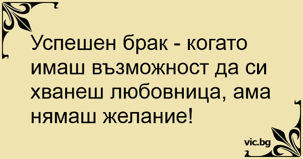 Успешен брак - когато имаш възможност да си хванеш любовница, ама нямаш желание!