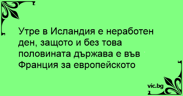 Утре в Исландия е неработен ден, защото и без това половината държава е във Франция за европейското