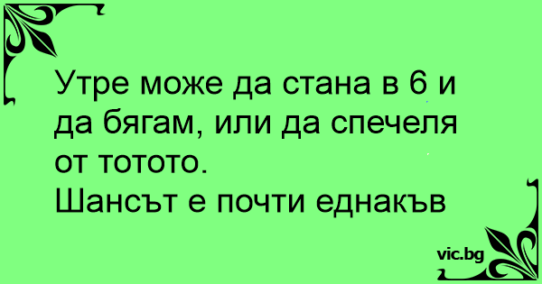 Утре може да стана в 6 и да бягам, или да спечеля от тотото.