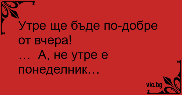 … А, не утре е понеделник…