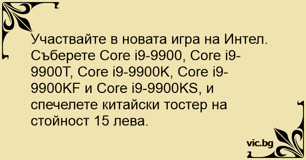 Съберете Core i9-9900, Core i9-9900T, Core i9-9900K, Core i9-9900KF и Core i9-9900KS, и спечелете китайски тостер на стойност 15 лева.
