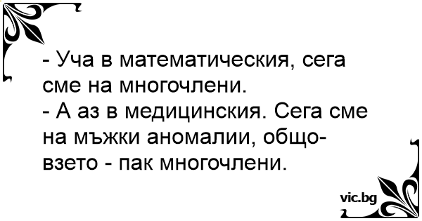 • Вицове от Facebook от нашата страница https://www.facebook.com/www.vic.bg