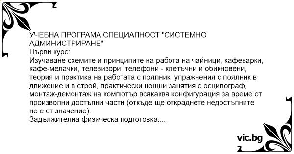 УЧЕБНА ПРОГРАМА СПЕЦИАЛНОСТ "СИСТЕМНО АДМИНИСТРИРАНЕ"